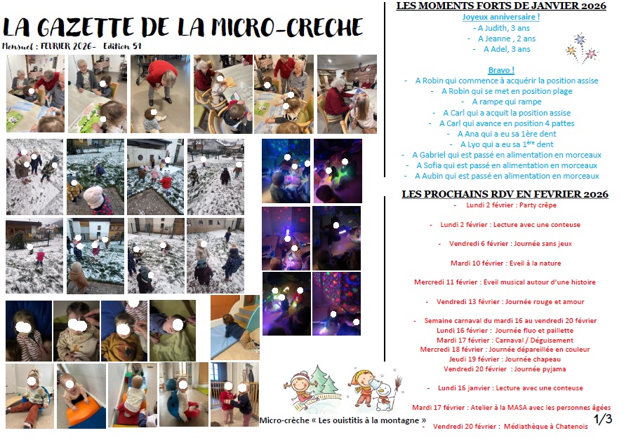 Venez découvrir les évènements du mois de février 2026 et les merveilleux exploits des enfants durant le mois de janvier 2026.